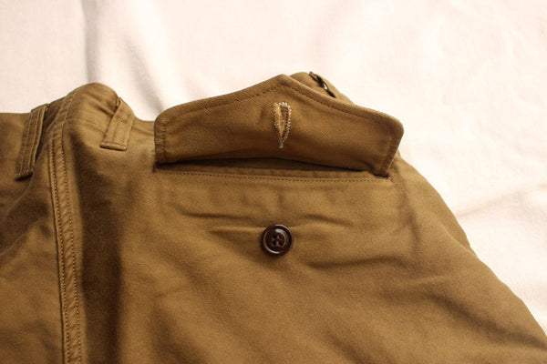 生地は米国産のスーピマコットンを用いたモールスキン生地を使用。