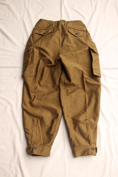※ウエストは内側一周を計測。裾幅はストラップ固定で、緩く絞った方のボタン位置での計測です。