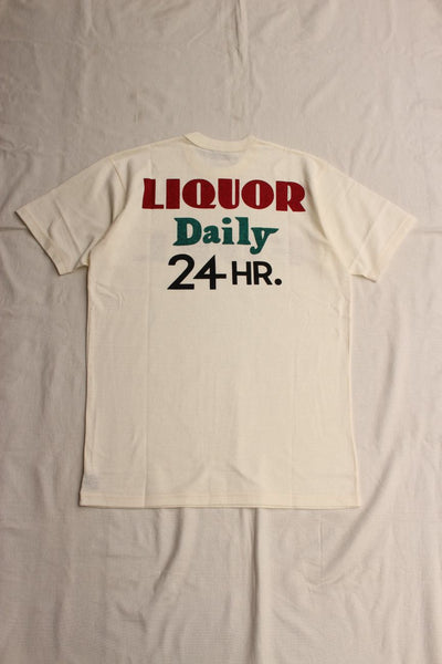 バックのLIQUORは街中のリカーショップ、Dailyはスーパーマーケットのような場所、24HR.はトラックストップなどを指し、別々の物を一つのモチーフにデザインされております。