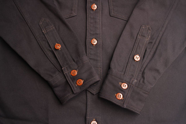 ずっしりと重量感が感じられますし、非常にしっかりした生地感で着ごたえがあるシャツです。