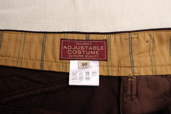 ※ウエストは内側一周を計測した数値です。この商品は腰にV割れがあり、計測数値を正確に出すのは不可能です。V割れをやや閉じ気味に計測しておりますが、数センチの誤差が生じます。サスペンダーボタン付きの商品で元からウエストが大きめの設定になりますので、その誤差も気にならないかもしれませんが、念のため記載しておきます。