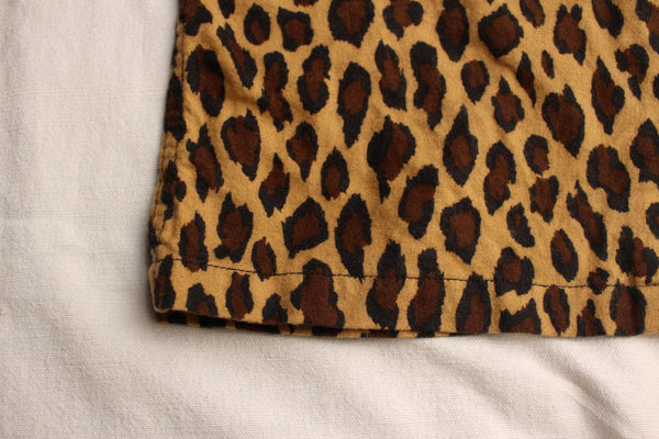 生地はやや薄手のコットンフランネルにレオパード柄をプリントしたものです。