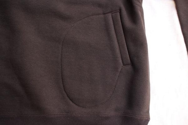 通常スウェットではあまり使わないような強撚でムラが強い太い糸を用い、厚さや固さやコシ感を出すために編み機の微妙なセッティングを幾度も繰り返し、ようやく完成したスペシャルな生地になります。