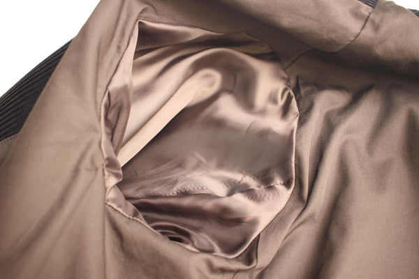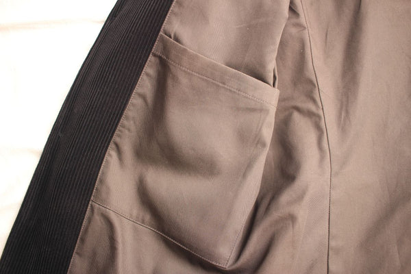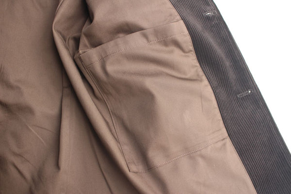フロント裾のカッタウェイはワークジャケットの雰囲気を重視するために緩やかにしておりますが、背面はテーラードジャケットのようなセンターベントがあります。