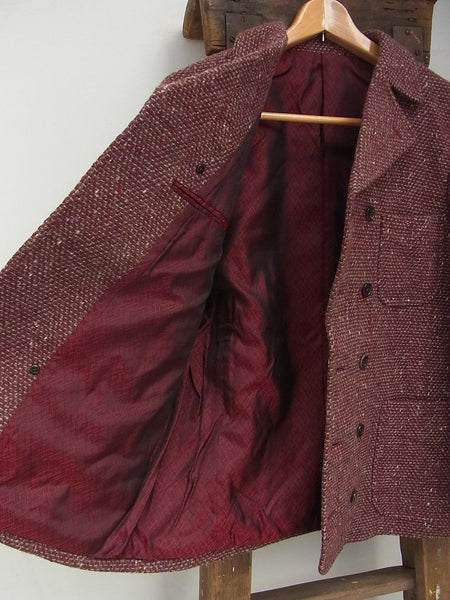 ワインカラーをベースにカラーネップなどが含まれたオリジナルのツイードです。