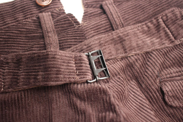 生地は太畝のコーデュロイで、色は濃いめのブラウン。