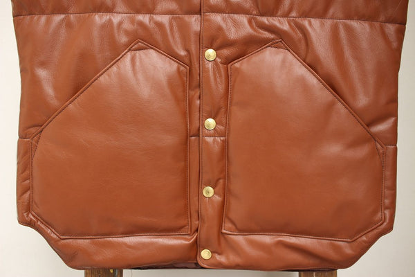 革の縫製工場のファクトリーブランドらしくオールレザーであること、さらにプリマロフトの最高水準の保温性、柔軟性、軽量さがバランス良くマッチしたベストです。