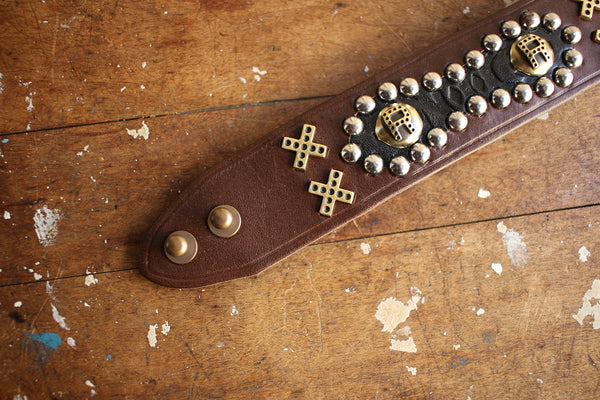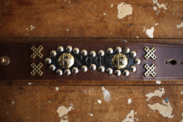 BO'S GLAD RAGS / Early 1940s Nashville Style Inlaid Cowhide Studs Bangle "New York Central R.R." (A19-03BR,CHOCO COWHIDE / BRASS)