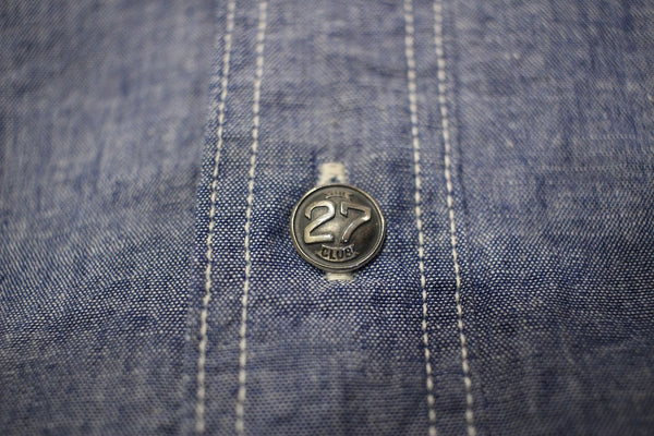 27クラブの刻印が入ったボタンで、足つきタイプ。シャツのボタンに適したサイズです。