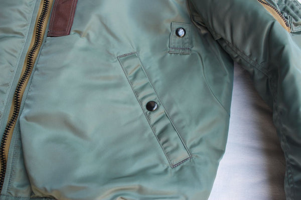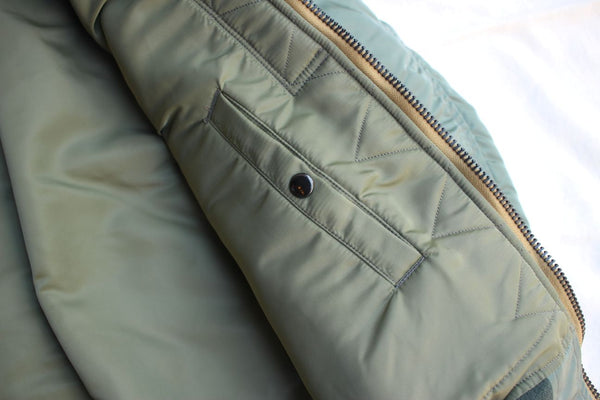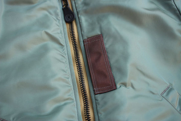 今季、生地は66ナイロンツイルを使用。カラーはセージグリーン。