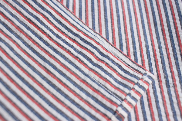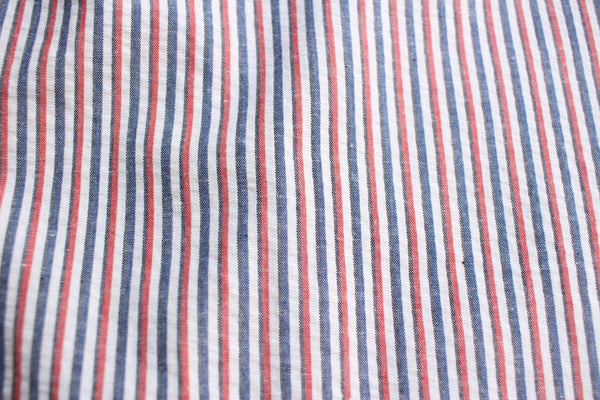 こちらの生地はコットン(77%)、リネン(23%)のサッカーストライプ生地を用いております。