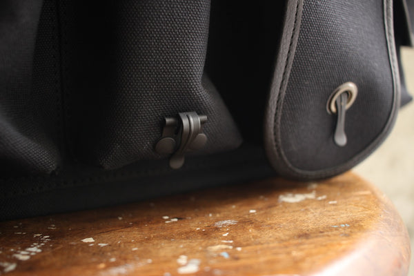 生地はコットンダックを使用し、カウハイドのトリミング、コットンリップストップのライニングが使用されます。