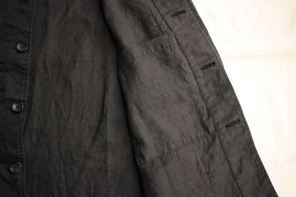 軽めのリネン生地でシャツ感覚でサラっ着用できそうですし、印象的な襟デザインでいつもと違った雰囲気を楽しめるジャケットになっているかと思います。