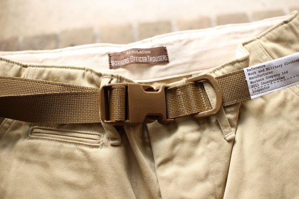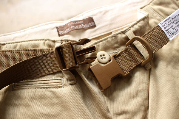 ナイロンウェビング(規格・MIL-A-A-55301)を用いた軽めのベルトです。