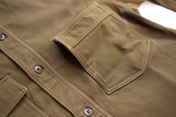 ずっしりと重量感が感じられますし、非常にしっかりした生地感で着ごたえがあるシャツです。
