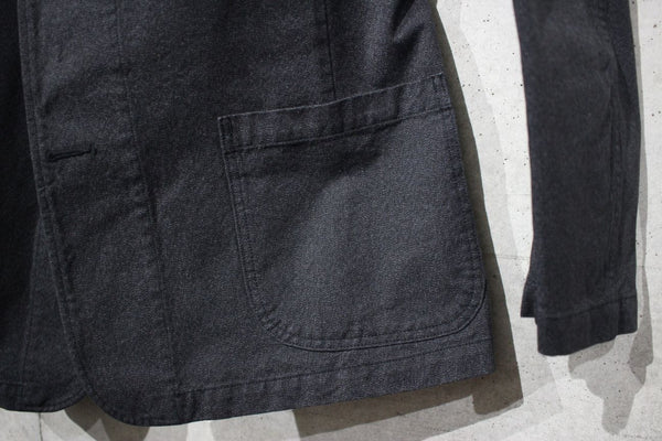 タテ糸は濃いブラックと薄いグレーに染めた糸を撚り合わせた杢糸を用いております。